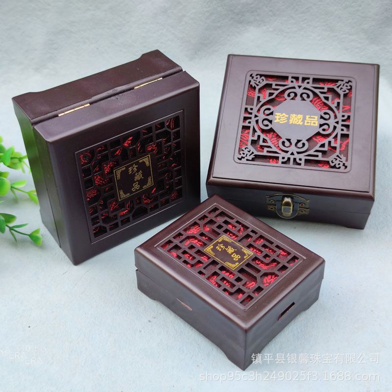Imitation wooden jewelry Jade gold pendant bracelet box hollow-out Wenwan core jewelry box hard outer packaging gift box