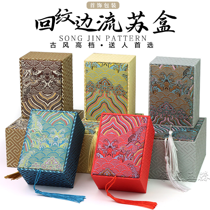 Retro Chinese Style Wave Pattern Tassel Handle Box Jewelry Jewelry Bracelet Handle Storage Packaging Box Gift Box