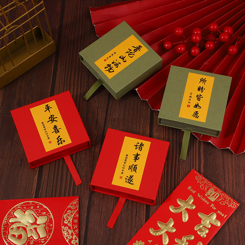 Jewelry Packaging Box Red Cut Out Blessing Bracelet Box Linen Tassel Jewelry Box Drawer Box Bracelet Packaging Box