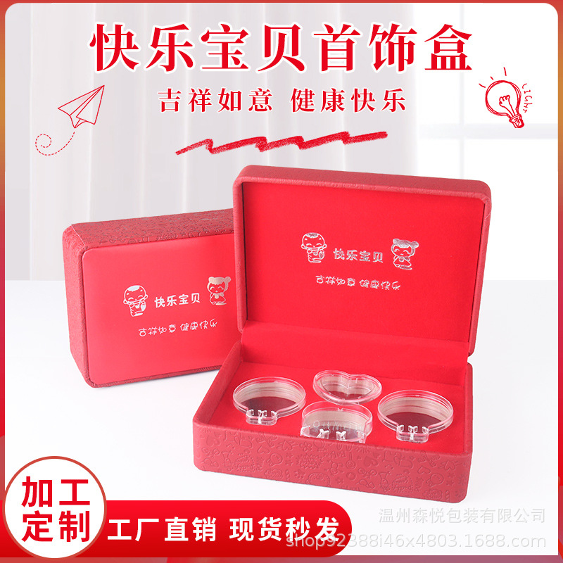 Spot Gold Jewelry Jewelry Box Three Gold Set Box Red Velvet Wedding Festive Gold Storage Gift Box