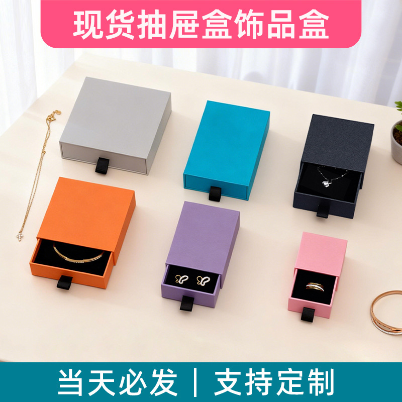 Multi-Style Jewelry Storage Box Pull-Out Ring Dust-Proof Ring Earring Box Jewelry Packaging Box Wholesale in Stock