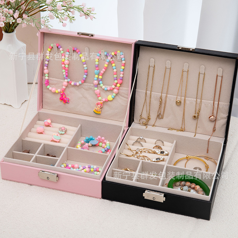Factory in stock double PU jewelry box storage simple beads storage treasure box necklace ring jewelry packaging box wholesale