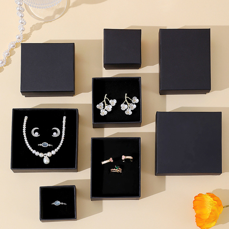 Cross-Border Black Lid-And-Base Jewelry Storage Box for Rings, Earrings, Necklaces, Bracelets, Packaging Box for Accessories, Pendant Bracelet Box