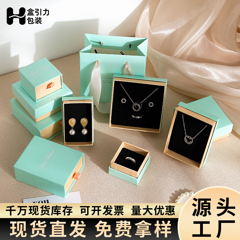 Spot Wholesale Blue and Pink Jewelry Storage Box Earrings Necklace Heaven and Earth Cover Ring Box Drawer Box Jewelry Packaging Box