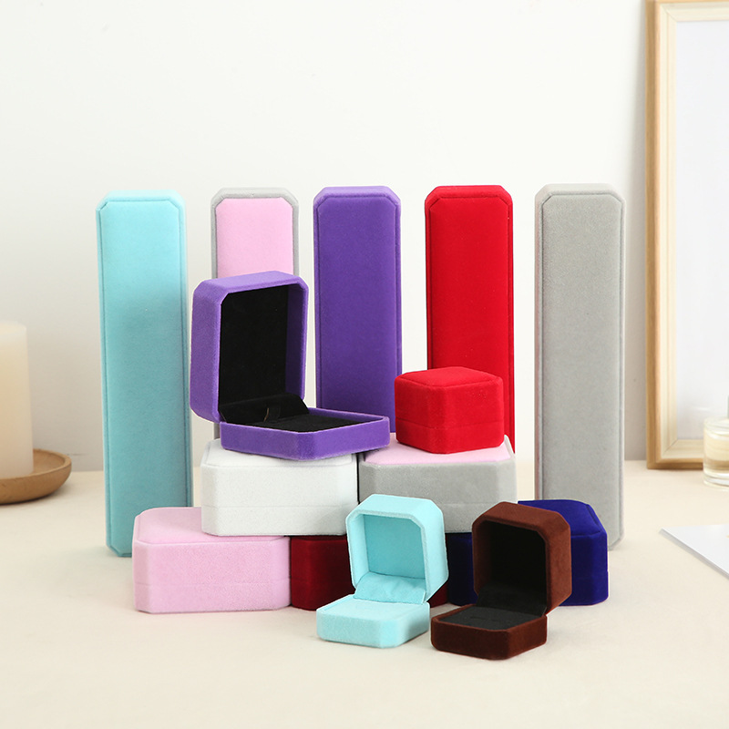 Flannel ring box rounded corner jewelry box jewelry stud earrings necklace jewelry gift flip box manufacturer in stock