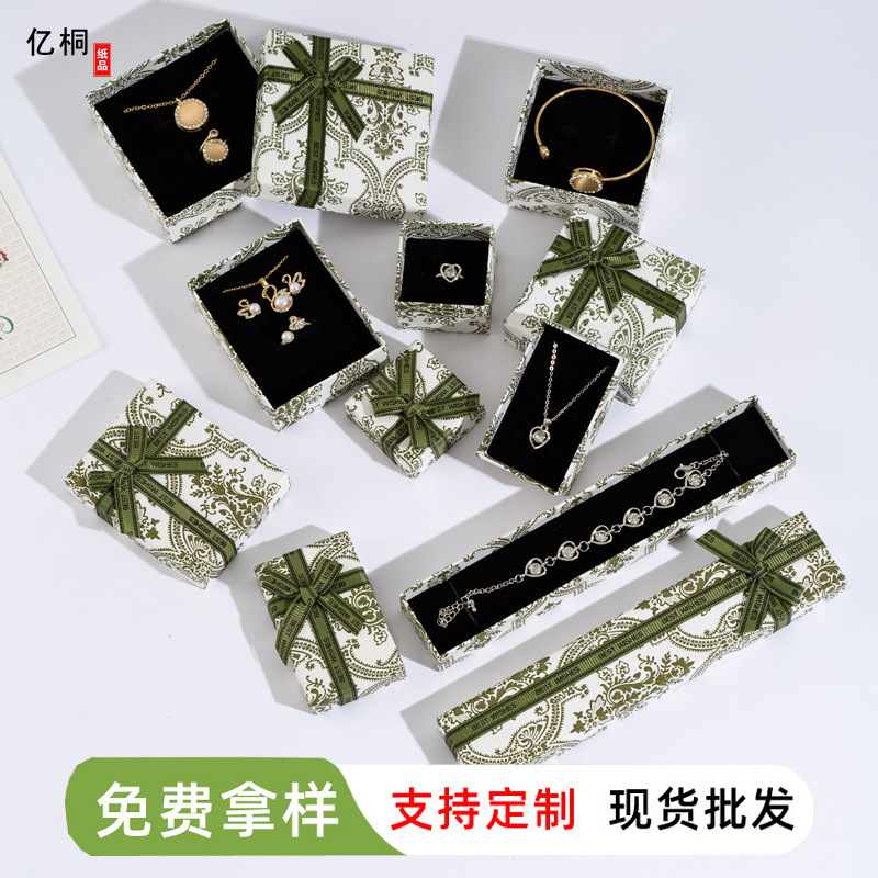 Factory Spot Wholesale Retro White Pattern Exquisite Gift Box Ring Earrings Jewelry Box Bracelet Necklace Packaging Box