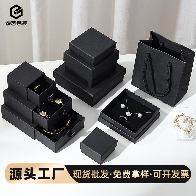 Factory spot jewelry packaging box black kraft paper jewelry box ring bracelet bracelet necklace jewelry box wholesale