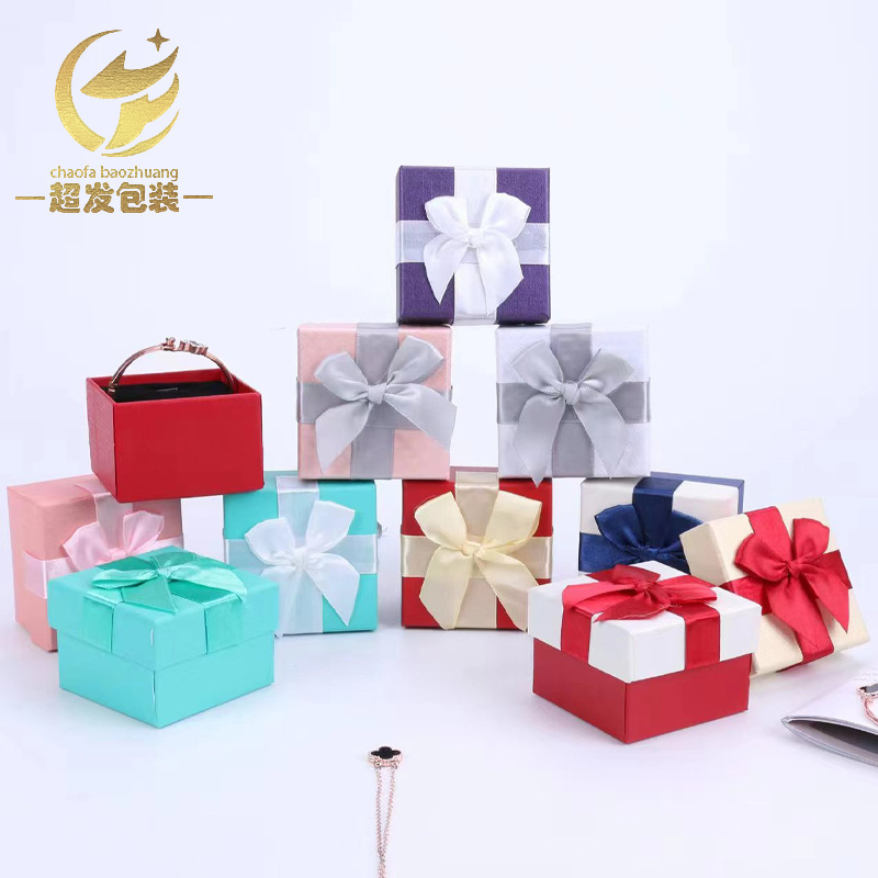 Factory direct jewelry box necklace ring pendant earrings bracelet box ribbon bow gift jewelry packaging box