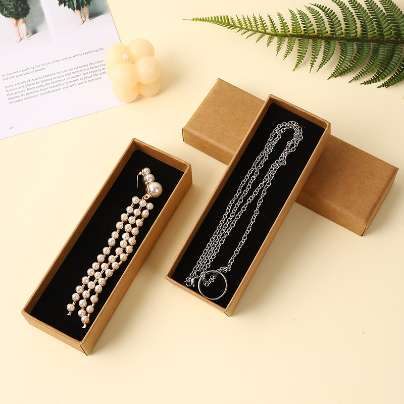 In Stock Vintage Kraft paper jewelry box necklace pendant jewelry box factory wholesale customizable LOGO