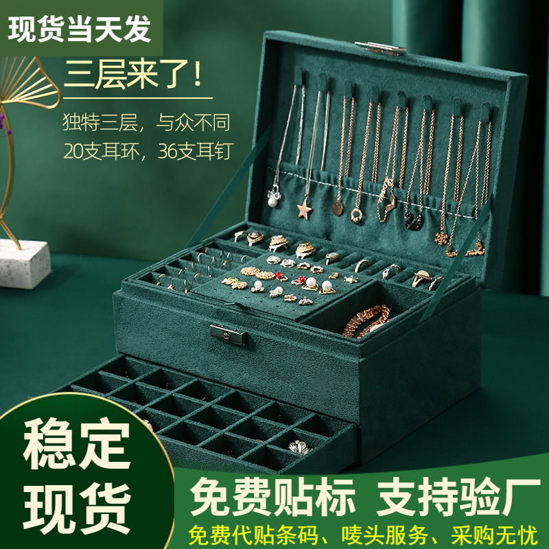 Three Layers with Lock Drawer Flannel Jewelry Jewelry Box Earrings Ring Box Jewelry Packaging Box Jewelry Bracelet Storage Box