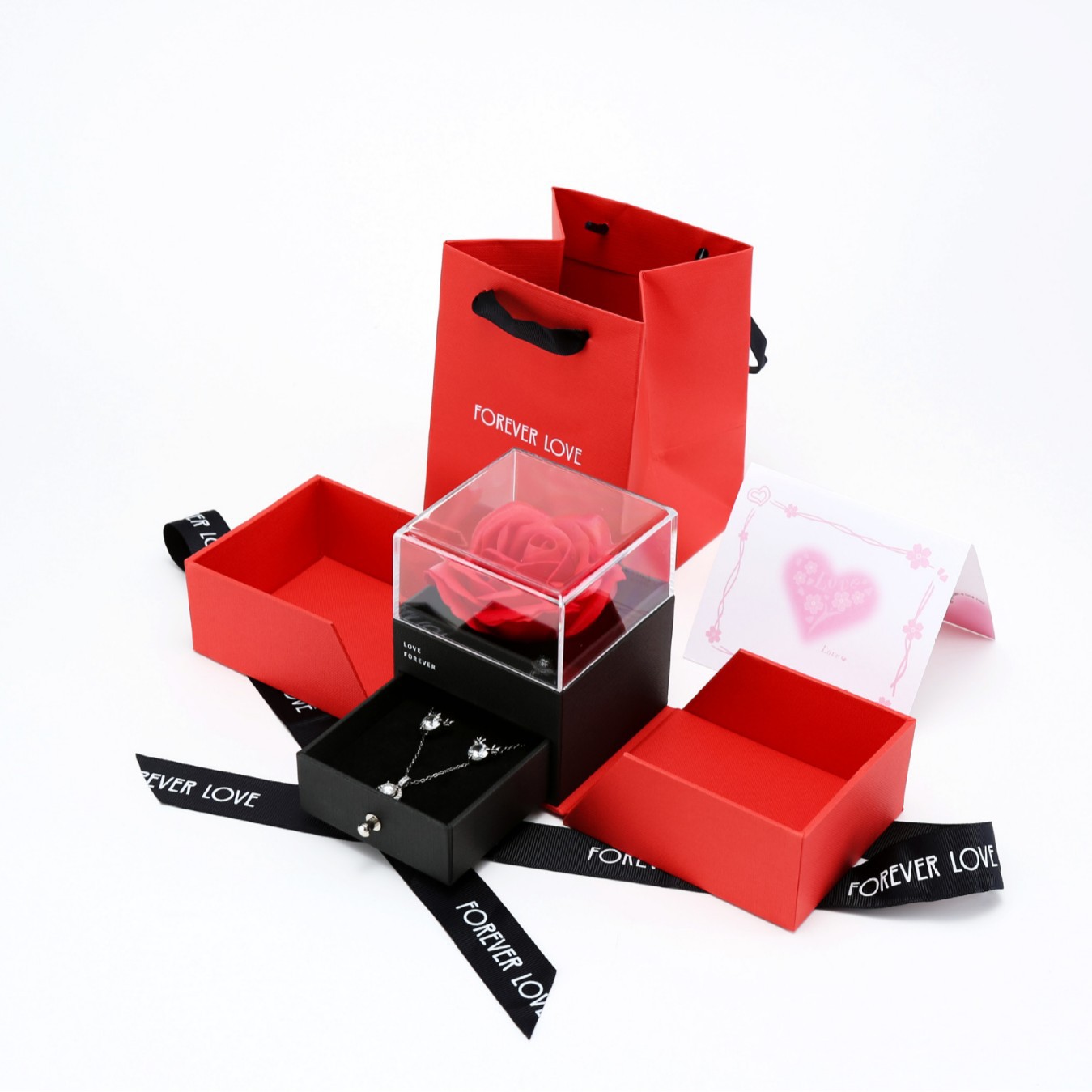 Cross-Border 520 Chinese Valentine's Day Eternal Flower Gift Box Bow Mother's Day Single Rose Ring Pendant Box