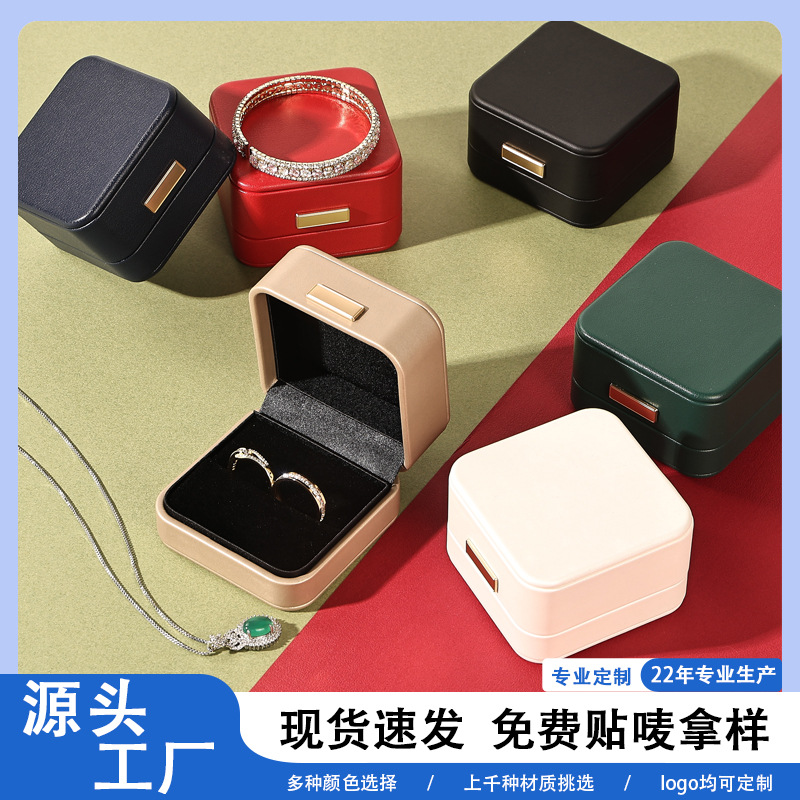 Pu Leather Ring Box, Pair of Ring Boxes, High-End Proposal Diamond Ring Box, Earring Cufflink Box, Wedding Gold Label Jewelry Packaging Box