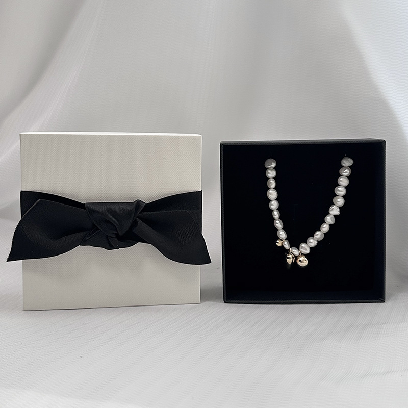 Simple French Style Bracelet Jewelry Gift Box Bow Heaven and Earth Cover Earrings Packaging Box with Cushion Ins High-end Paper Box