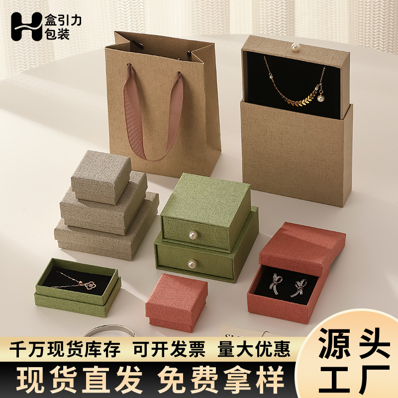 Manufacturer Wholesale Linen Velvet Jewelry Packaging Box Necklace Earrings Jewelry Ring Box Bracelet Pendant Bracelet