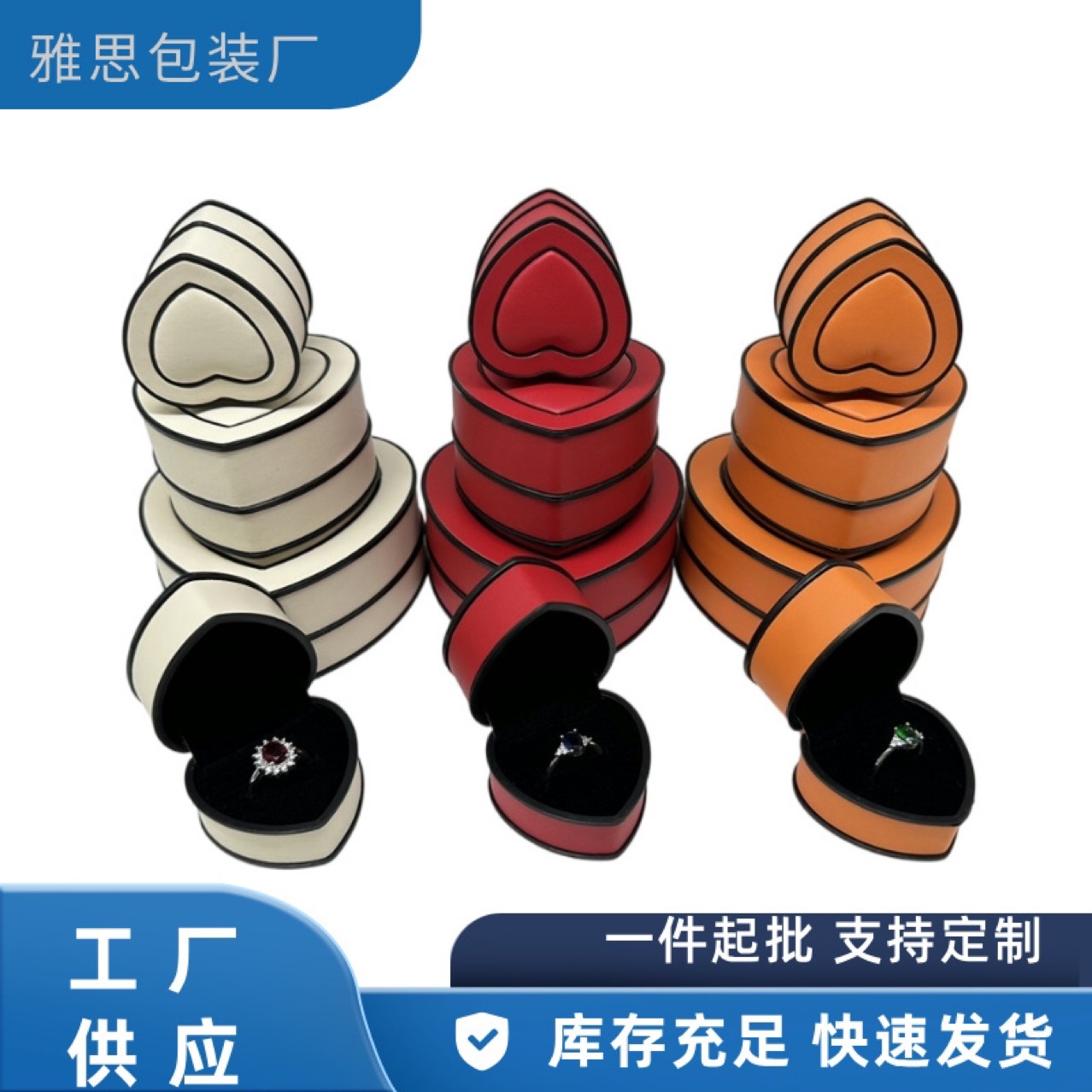 Heart-Shaped Pu Leather Jewelry Box Earrings Ring Box Jewelry Gift Box Pendant Necklace Box Wholesale Jewelry Packaging Box