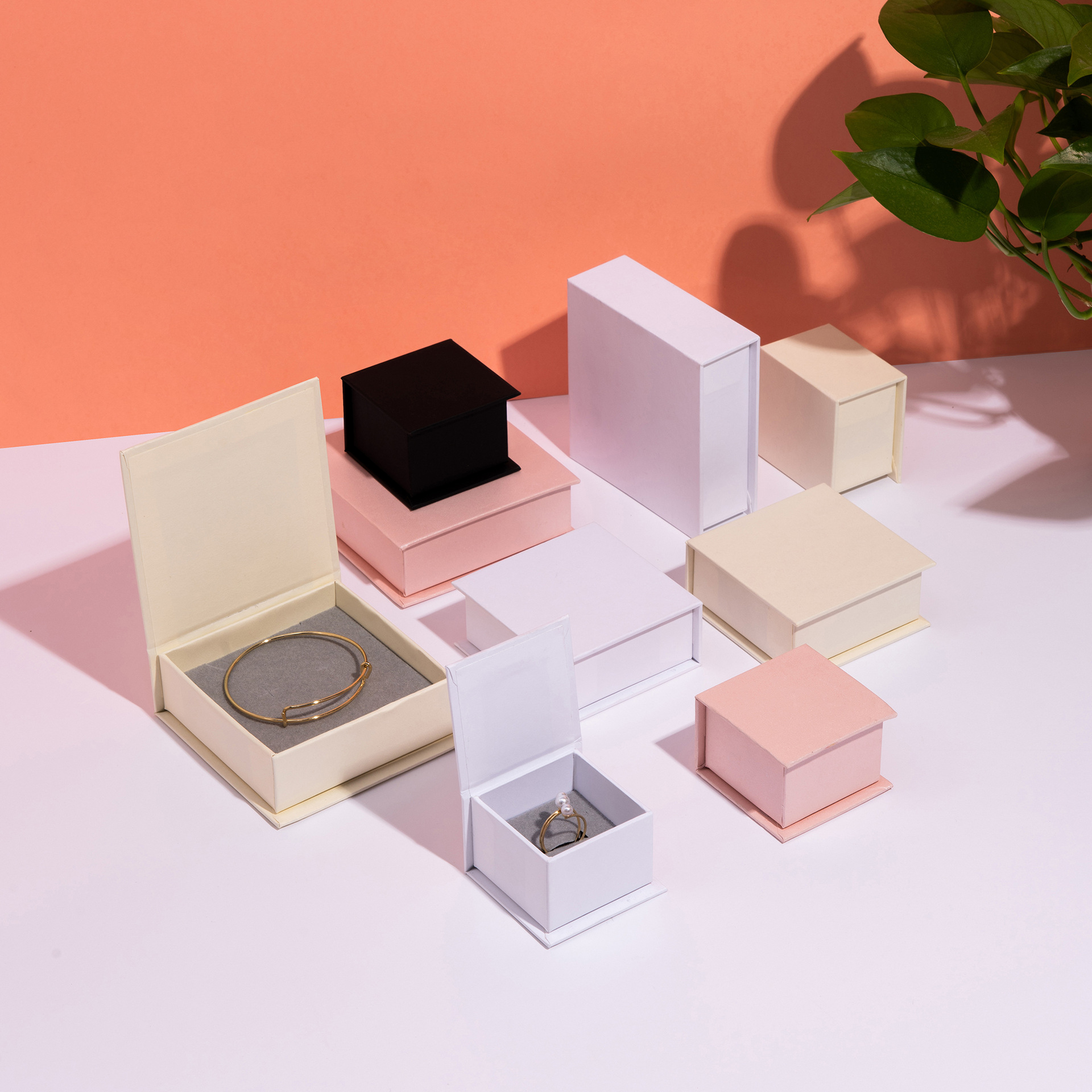 Factory wholesale black and white Pink gray ring earrings pendant necklace bracelet bracelet box jewelry storage box