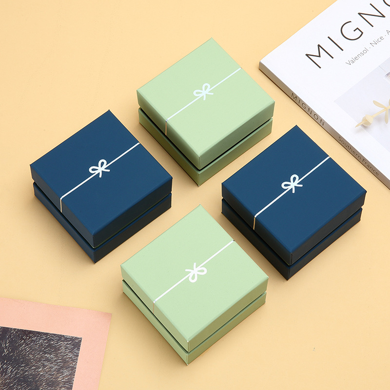 Spot bow cover jewelry box high-grade Jewelry necklace ring gift box ink blue Bud green earring box