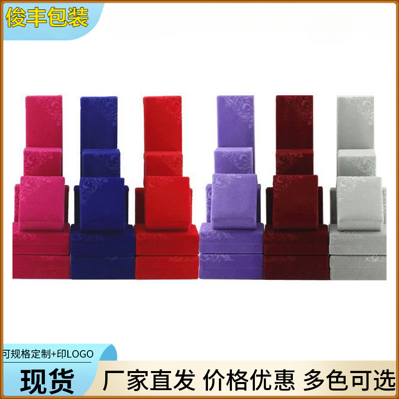 Embossed Right-Angle Velvet Jewelry Packaging Box Velvet Earrings Pendant Bracelet Necklace Storage Packaging Box Wholesale