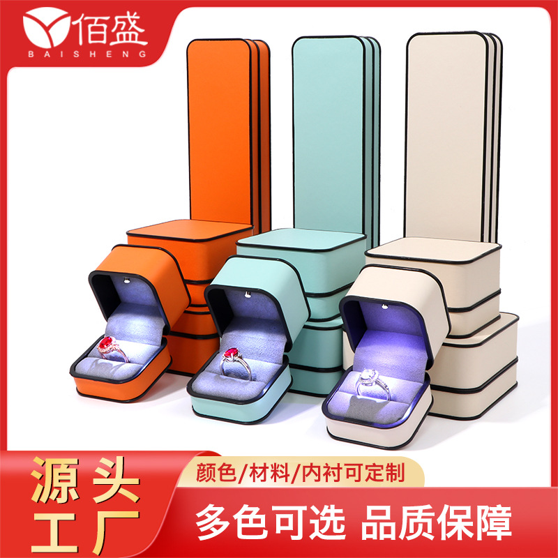 New Round PU Leather Ring Necklace Bracelet Box High-end LED Light Emitting Jewelry Jewelry Box Long Chain Box Customized