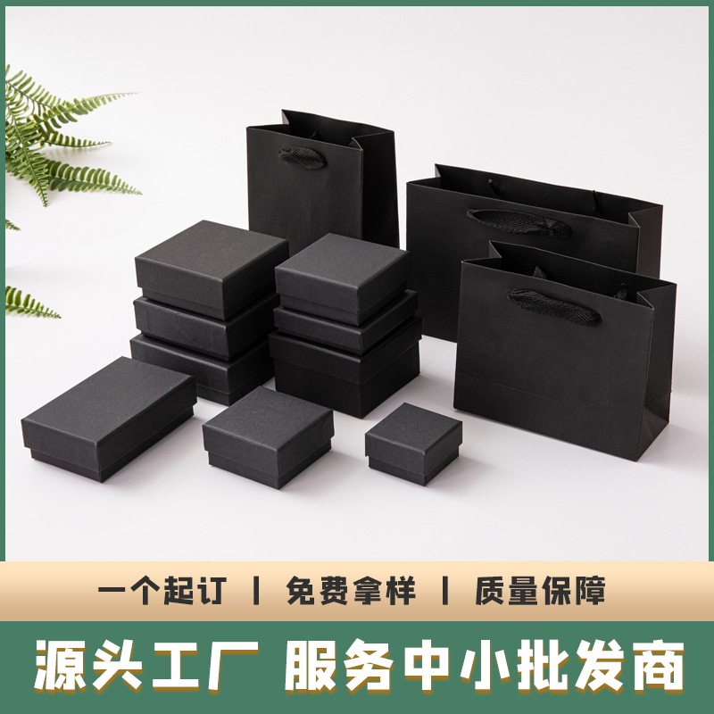 Factory direct black jewelry box necklace jewelry box bracelet earrings ring pendant gift box paper bag