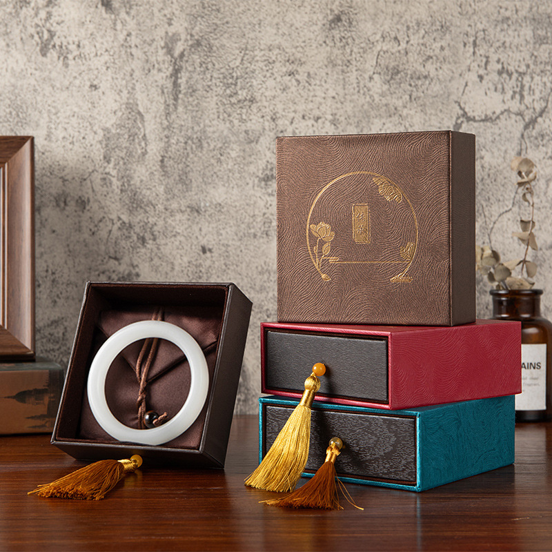 Chinese Style Tassel Heritage Box Gold Jewelry Bracelet Box Antique Gold Bracelet Jewelry Packaging Drawer Box