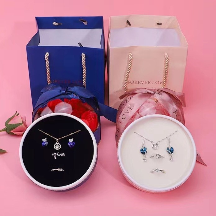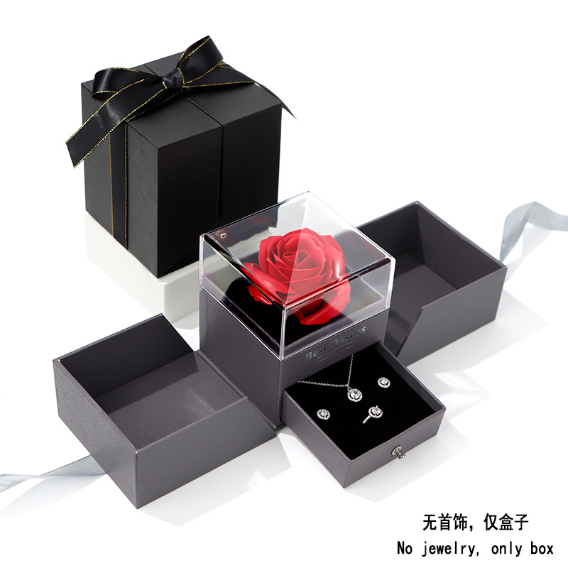 9 Eternal Flower Boutique Jewelry Box Necklace Jewelry Packaging Box High-End Gift Box Rose Double-Layer Drawer Gift Box