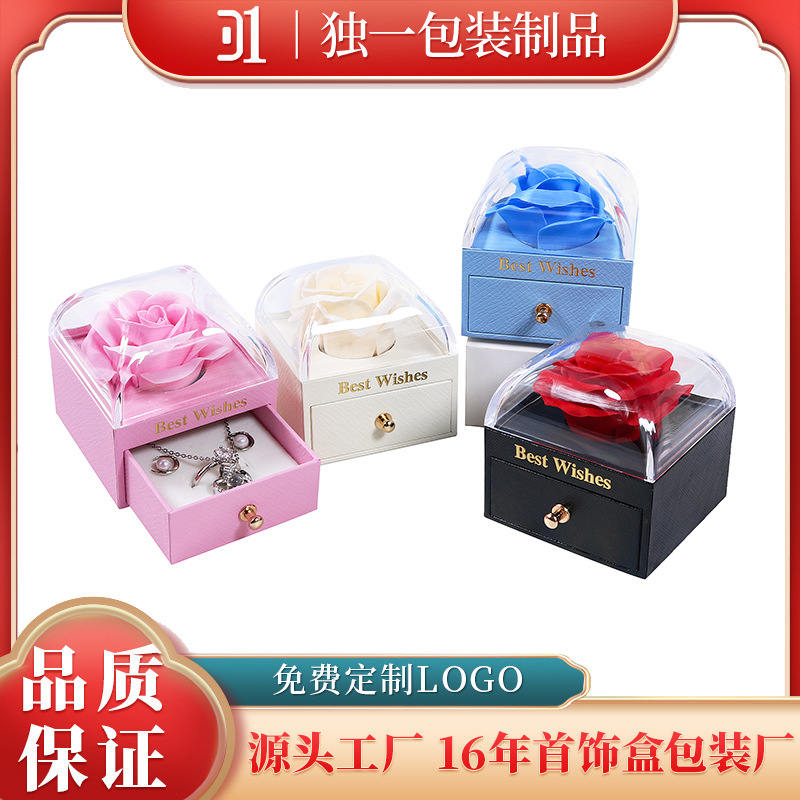 Creative Rotating Soap Rose Jewelry Packaging Box Immortal Flower Reversible Proposal Confession Ring Necklace Box