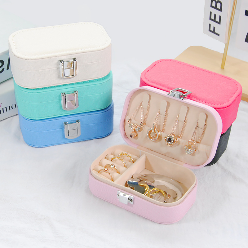 New color jewelry box travel portable jewelry storage box solid color large capacity ring advanced finishing box wholesale