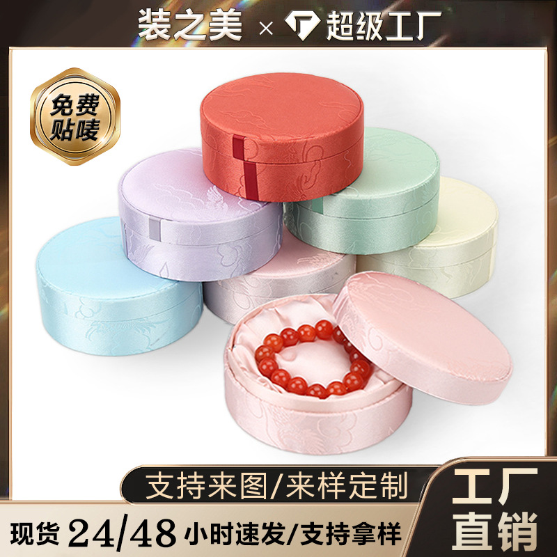 High-End Embroidered Bracelet Box, Chinese Style Buddhist Beads Bracelet Jewelry Box, Heaven and Earth Cover, Round Jade Toy Packaging Box