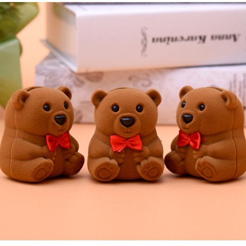 In stock cute plastic cartoon flocking bear ring pendant stud earrings jewelry box