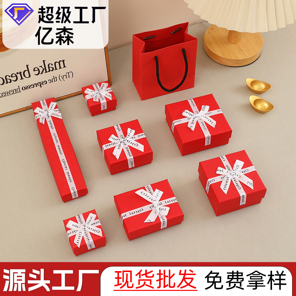 Cross-border Hot-selling Tiandi Cover Jewelry Storage Box Jewelry Necklace Red High-end Bow Valentine's Day Jewelry Box