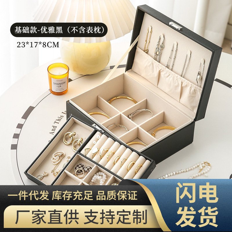 2023 new earrings storage box with lock high-end exquisite jewelry bracelet necklace storage leather box jewelry box