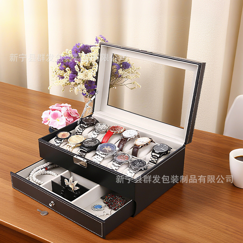 Watch Storage Box Double Layer 12 Twelve-Digit Watch Box Bracelet Bracelet Wooden Leather Jewelry Box