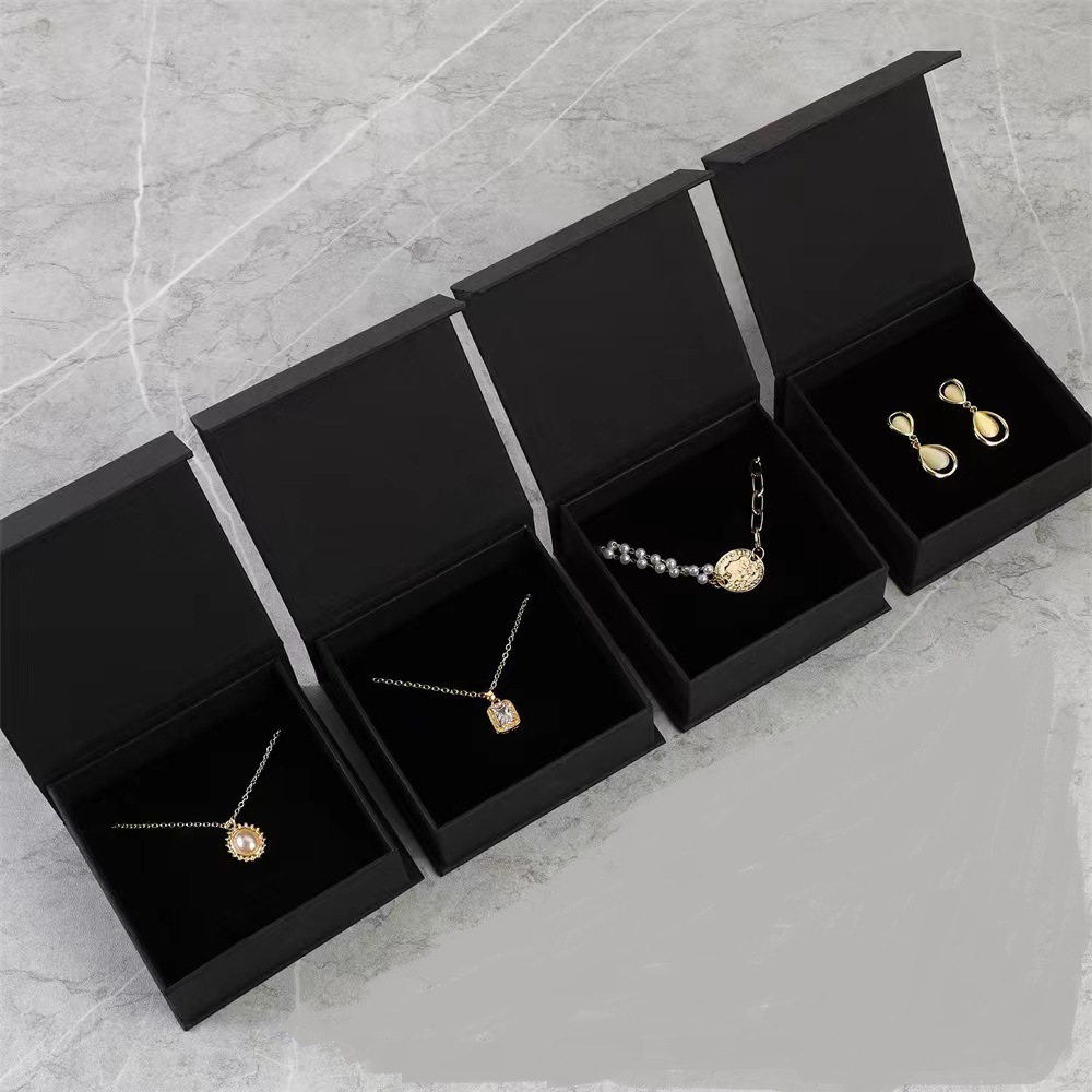 Custom-Made Black Magnetic Flip-Top Jewelry Packaging from the Source Factory, High-End Jewelry Necklace Storage Book-Shaped Paper Box