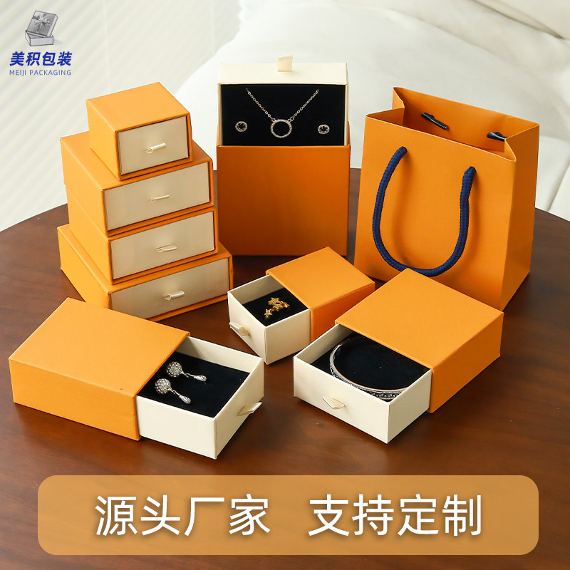 In stock bronze yellow drawer necklace box jewelry box ring stud earrings bracelet jewelry drawer carton