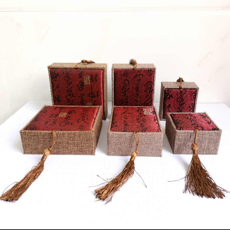 Red Ancient Poetry Jewelry Ring Jewelry Box Wooden Cloth Tassel Beads Box Jade Bracelet Handstring Packaging Box