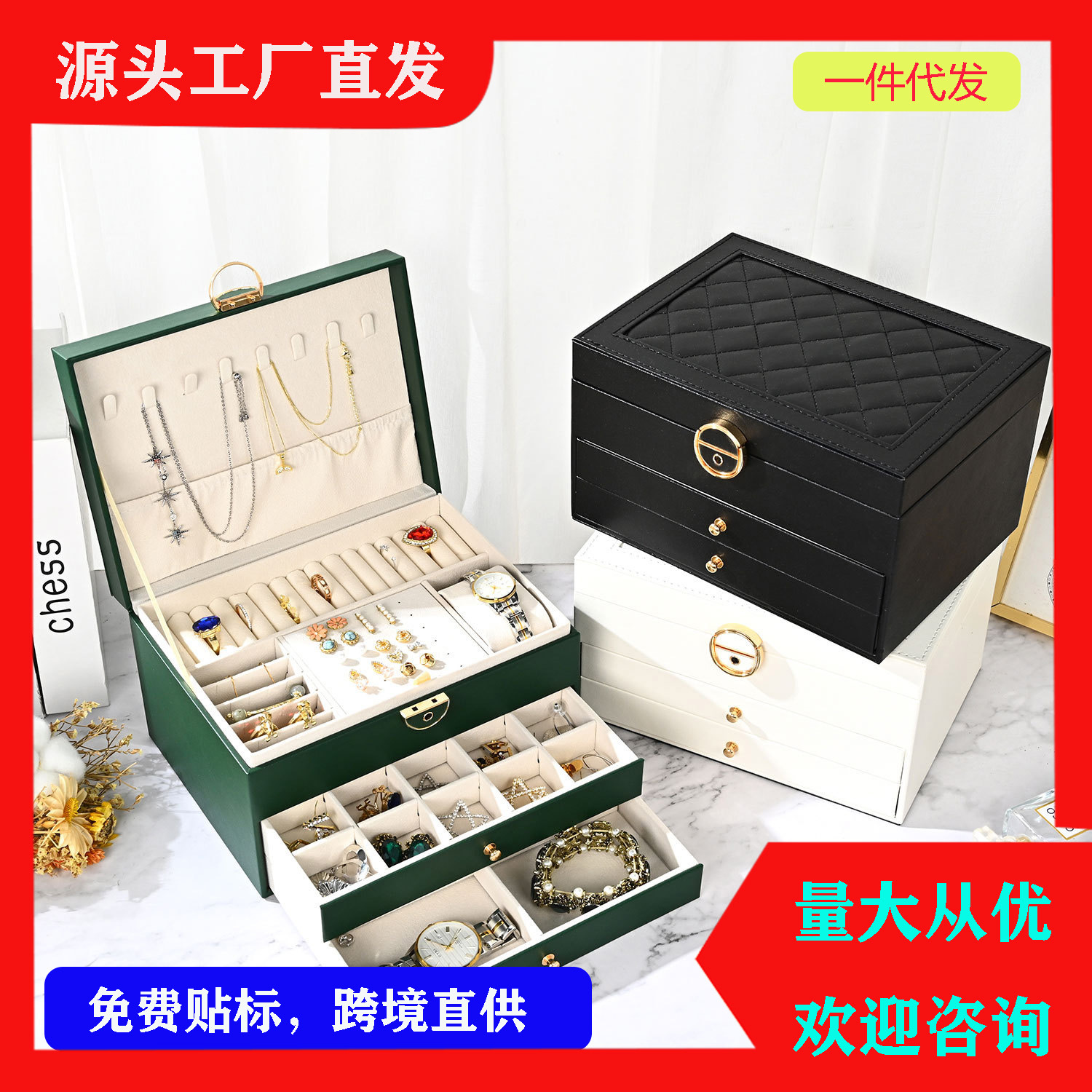 Ringge Three-Layer Large Capacity Jewelry Drawer-Type Storage Box Jewelry Earrings Necklace Bracelet Watch Earrings Jewelry
