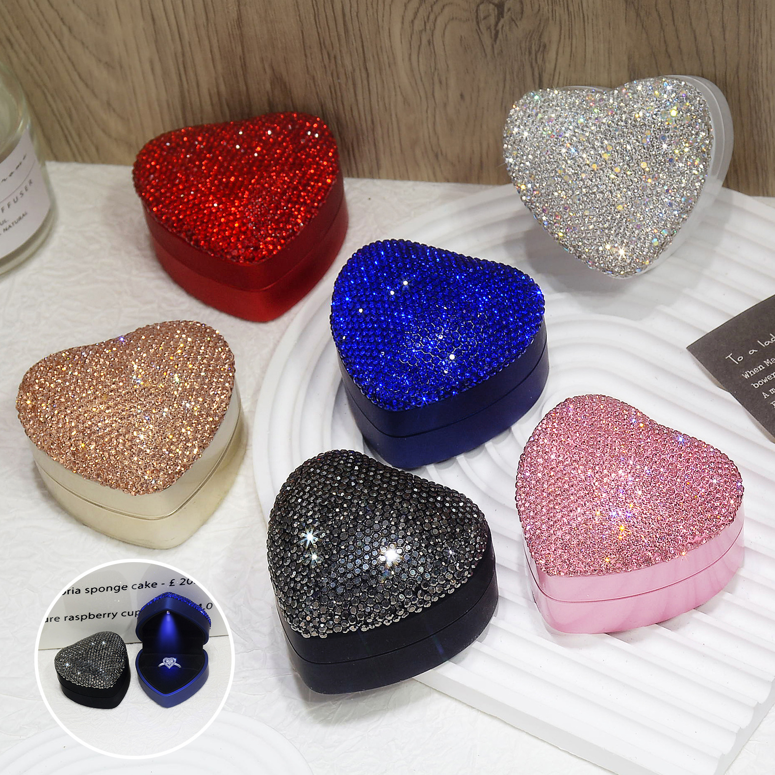 Cross-border Diamond Peach Heart Jewelry Jewelry Box Flocking Gold Ring Box Wedding Supplies Couple Ring Box suit