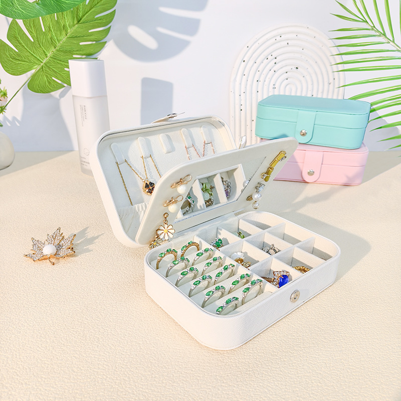 Jewelry Box Jewelry Storage Box Double-Layer Earrings Ring Velvet Pu Twill Jewelry Box Amazon Portable Jewelry Box