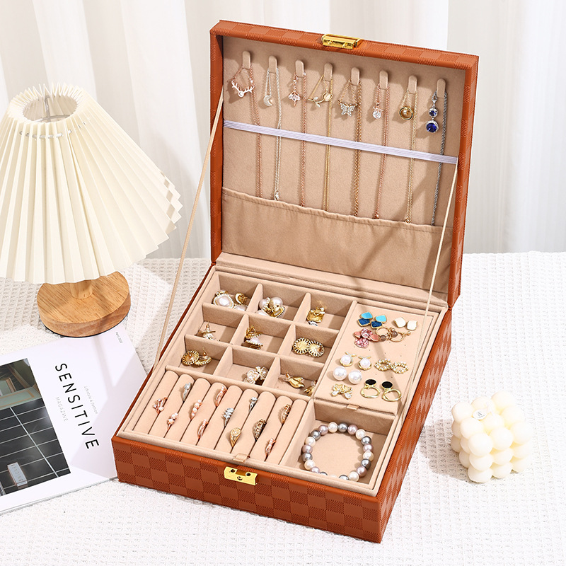 Jewelry Box Checkerboard Pattern European Style Multi-Layer Jewelry Storage Box for Earrings, Necklaces, Rings, Bracelets, and Jewelry
