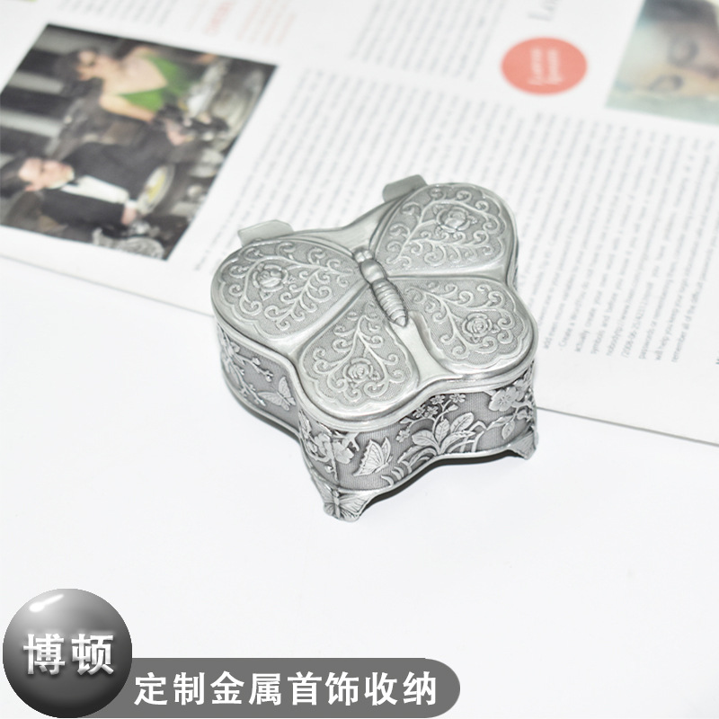 Customized Butterfly Style Metal Jewelry Box Flip Cover Classy Earrings Ring Storage Box Custom Metal Ornaments