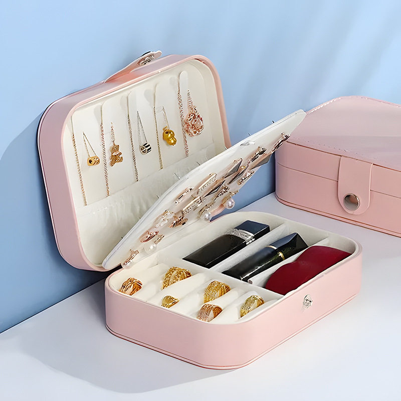 High-end Jewelry Box with Snap Button Ready-made Large-capacity Ring Earrings Jewelry Storage Box Travel Portable Jewelry Box