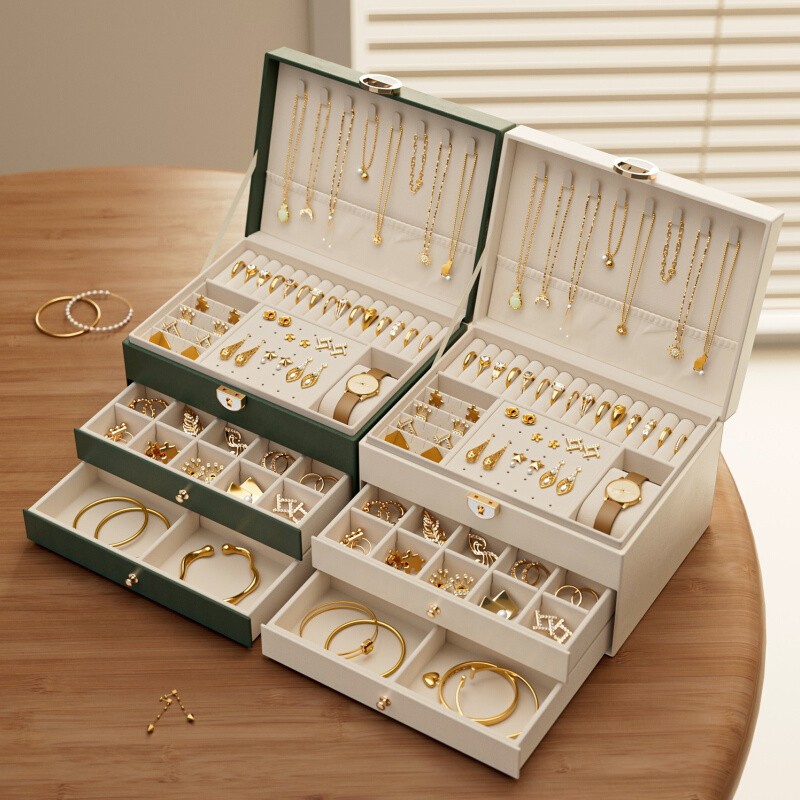 Jewelry Storage Box Multi-Layer High-End Gold Hand Jewelry Bracelet Necklace Earrings Earrings Ring Jewelry Box Large