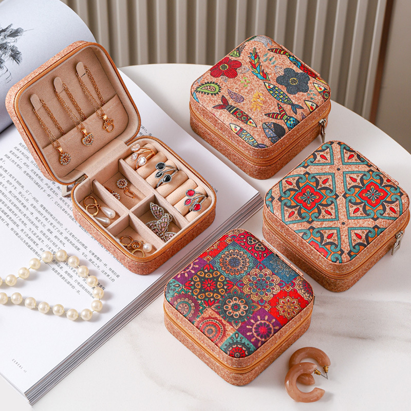 High-End Retro Jewelry Box Portable Travel Earrings Ring Necklace Storage Box Printed Jewelry Gift Portable Box