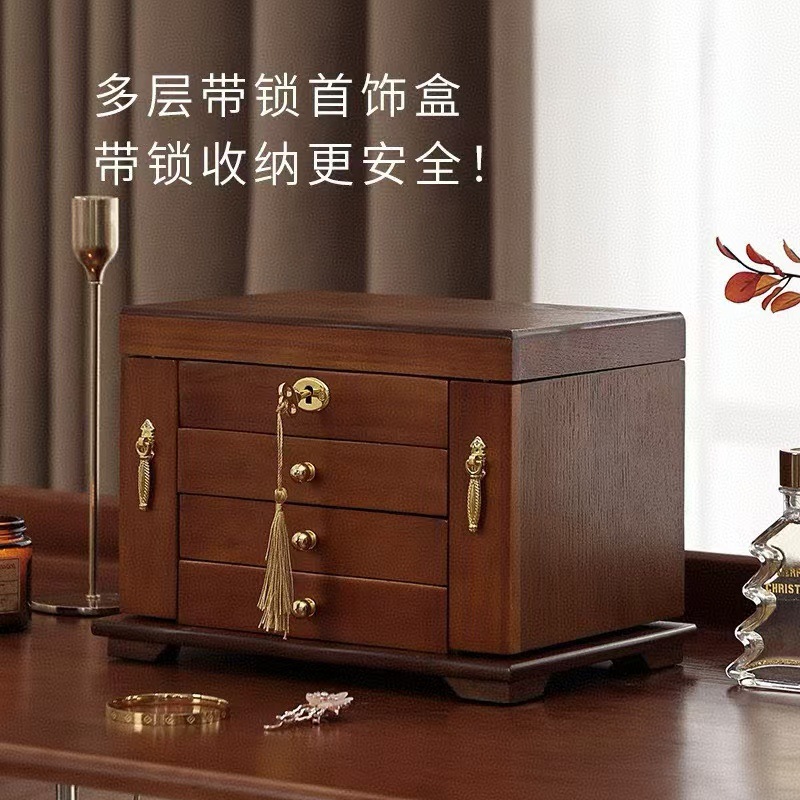 Solid Wood Jewelry Storage Box Wooden Large Capacity Jewelry Jewelry Box Multi-Layer Retro Jewelry Storage Box Jewelry Box