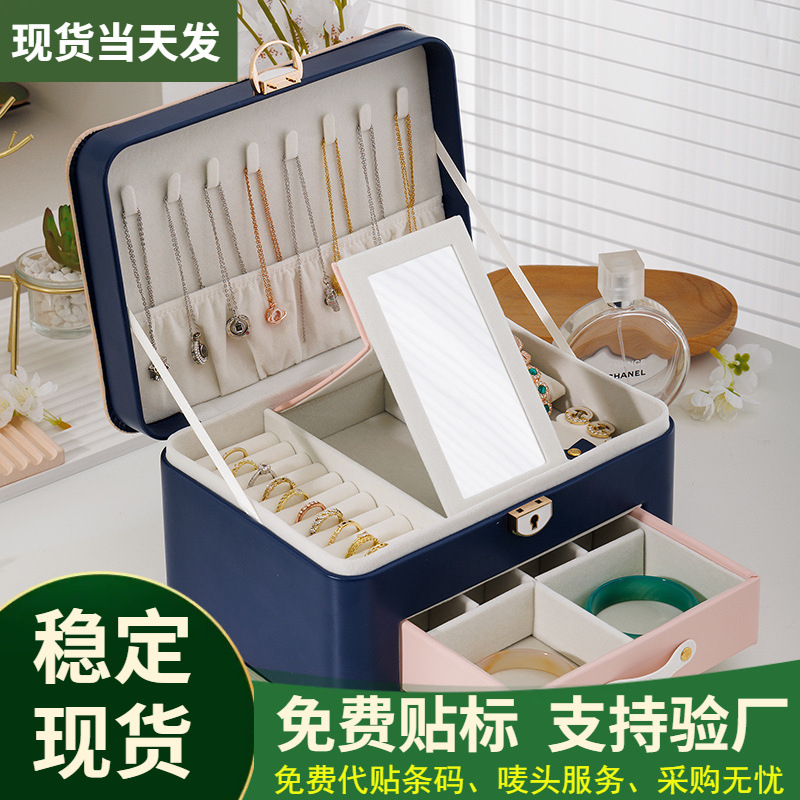 Jewelry Storage Box, High-End Multi-Layer Large-Capacity Household Jewelry Earrings, Earrings, Necklaces, Drawer Jewelry Box