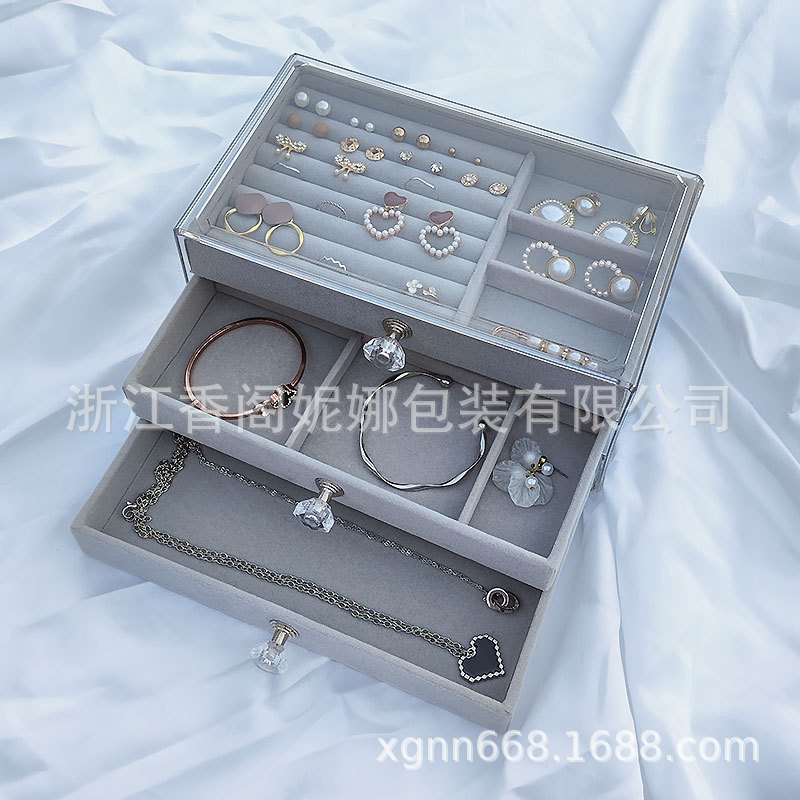 Wholesale Rebound Flocking Acrylic Multi-Layer Three-Layer Jewelry Storage Box Jewelry Box Korean Style Simple Gift Box
