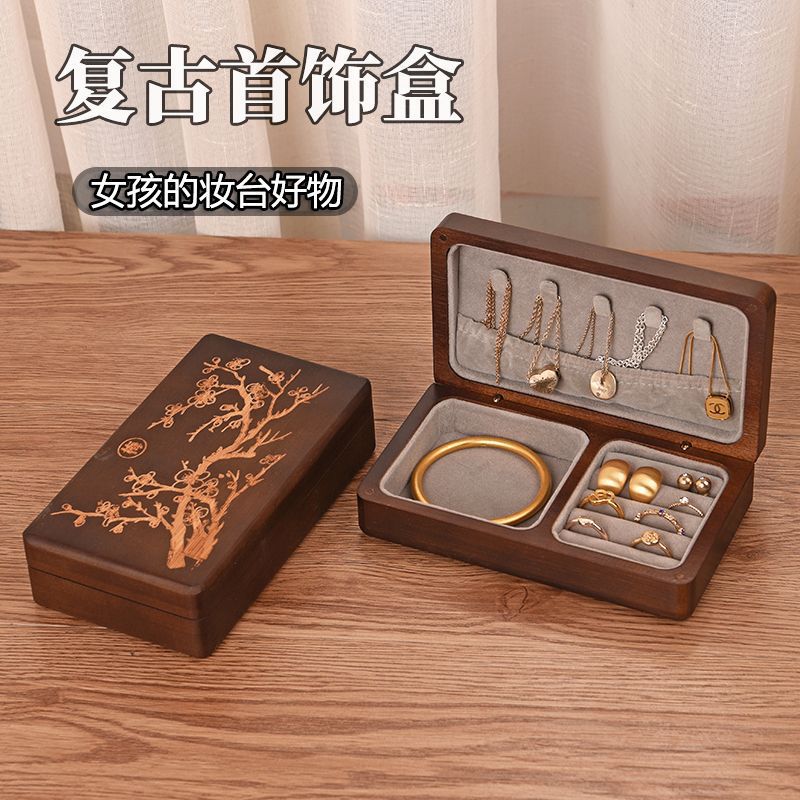 High-End Solid Wood Jewelry Box, Portable, Compact, Bamboo Wood Exquisite Storage Box, Bracelet, Necklace, Jewelry Hardware Jewelry Box