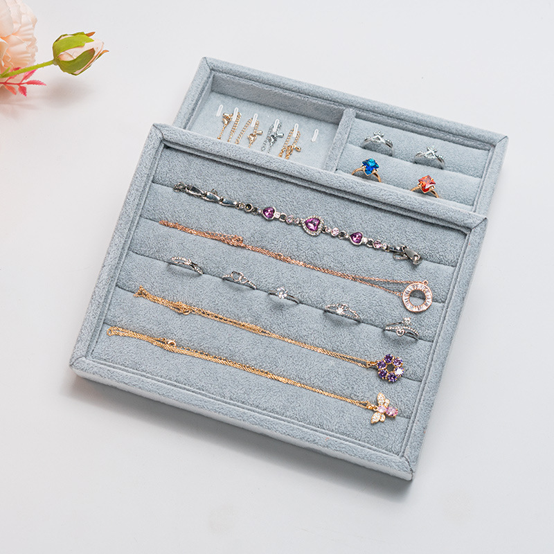 Velvet jewelry storage box ring earring box multi ring storage plate jewelry display earring storage box wholesale