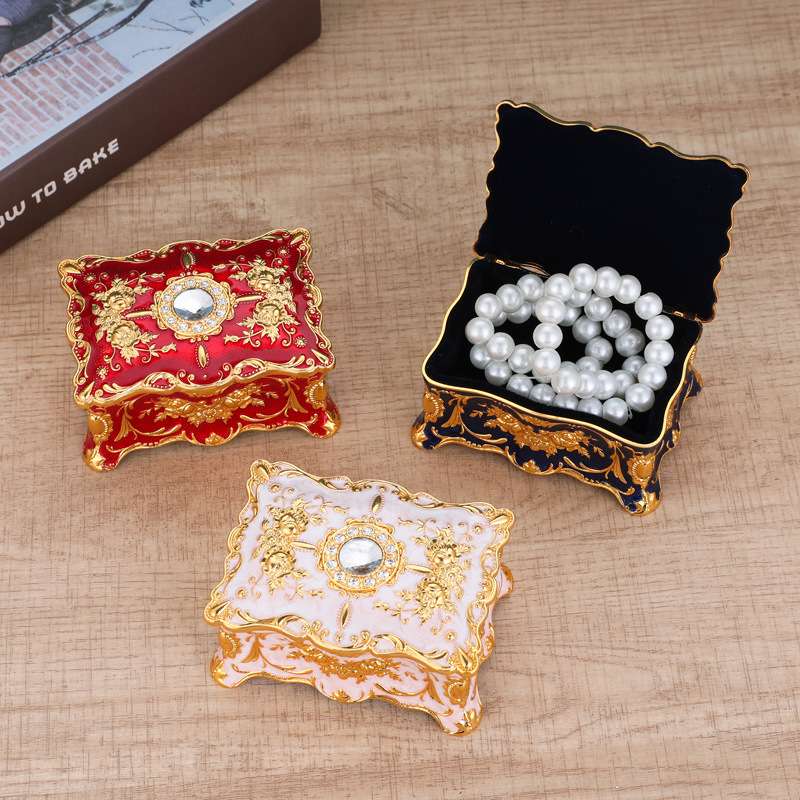 European Style Jewelry Box Metal Enamel Color Creative Ring Necklace Earrings Storage Box Vintage Knot Marriage Gift